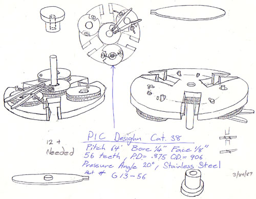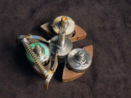 Early in the sensor development we had to locate these round sensors over each other for screening on the patterns accurately. We designed and constructed this fascinating geared marvel. It became totally obsolete when the laser-cutting process created hexagonal shapes.